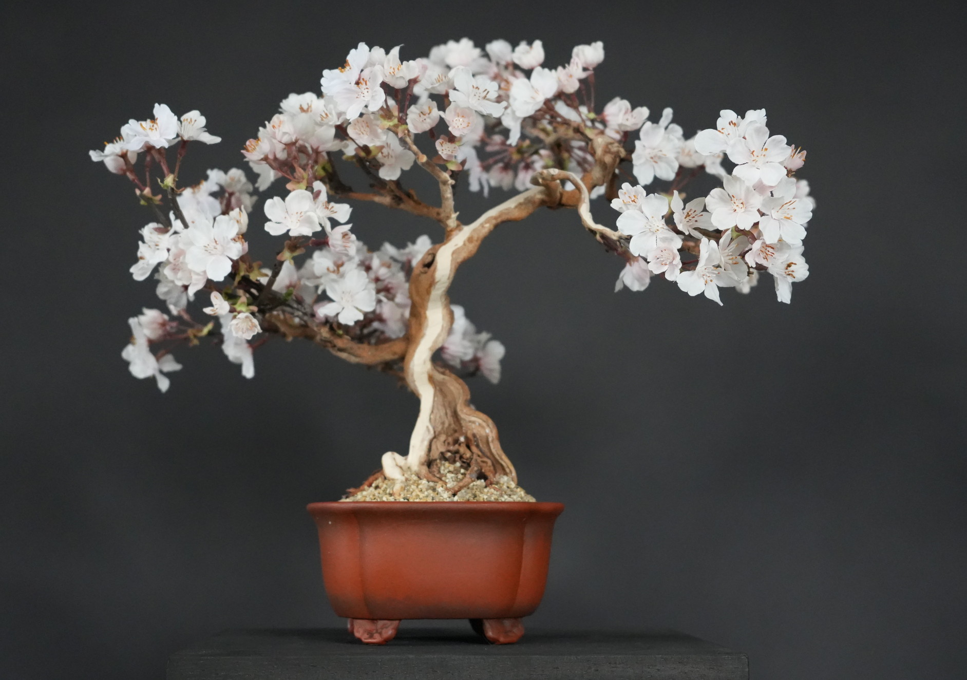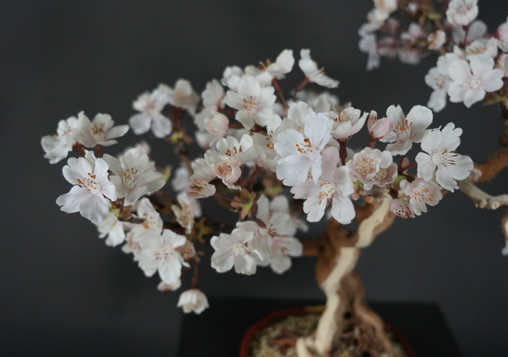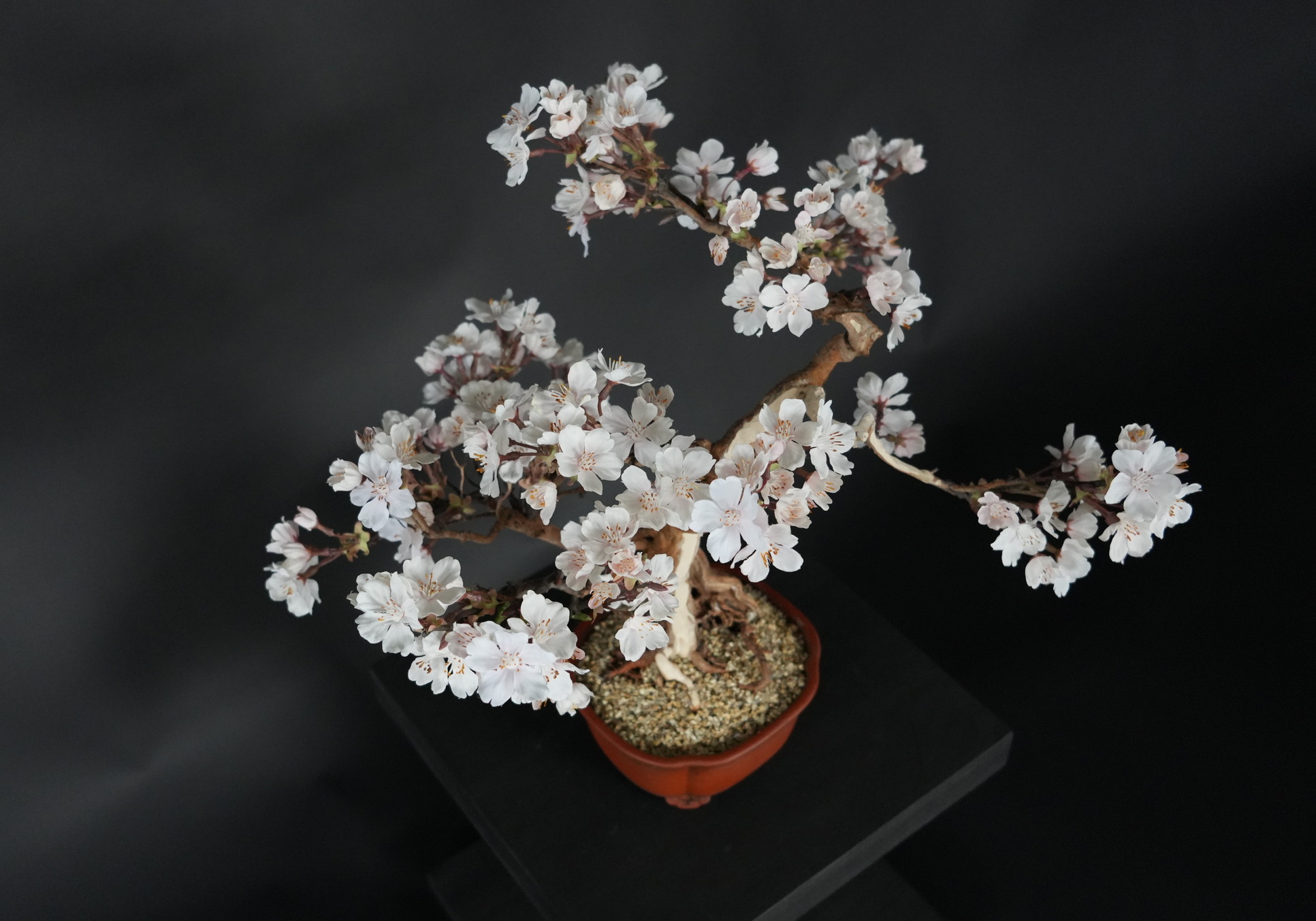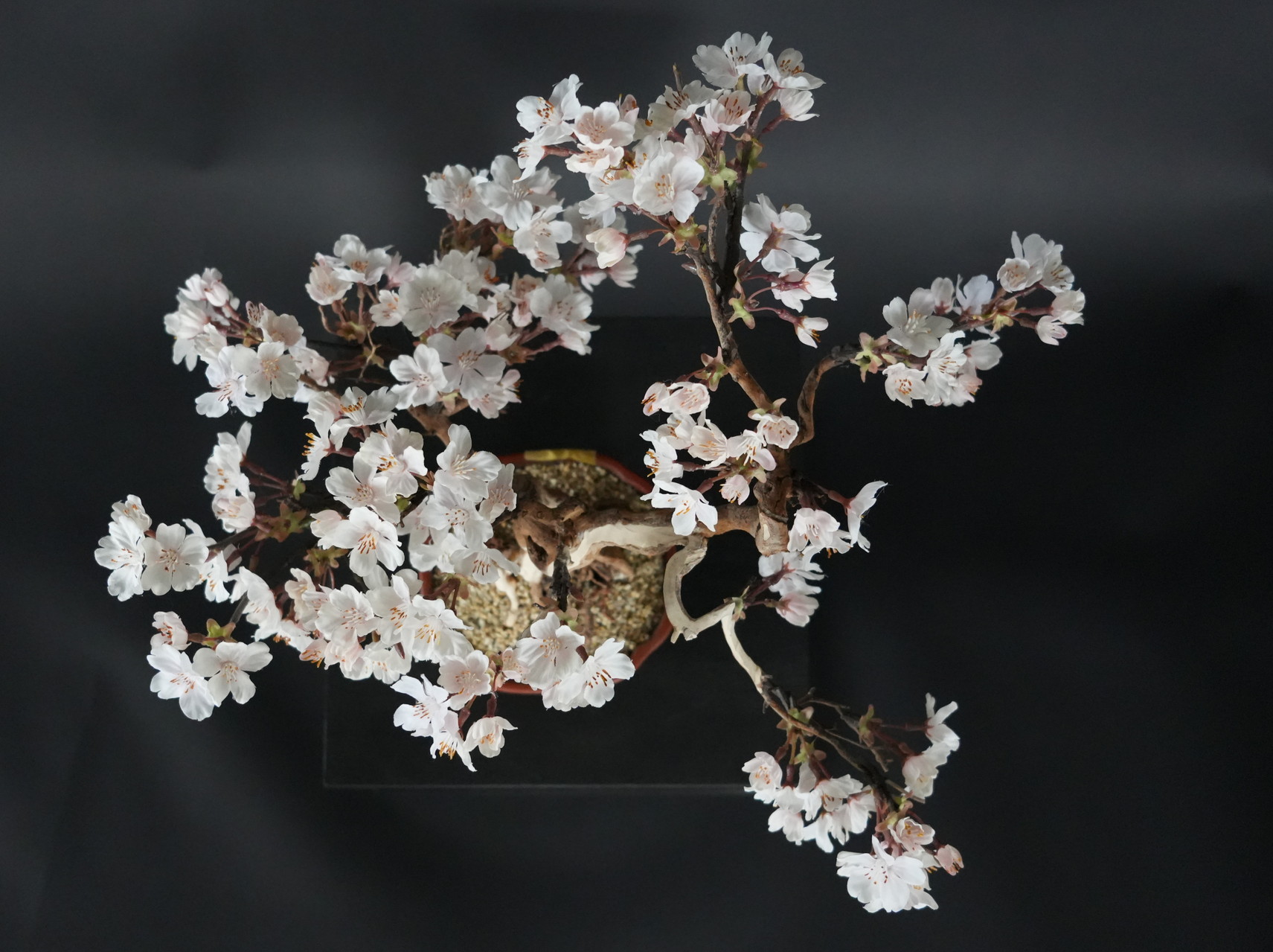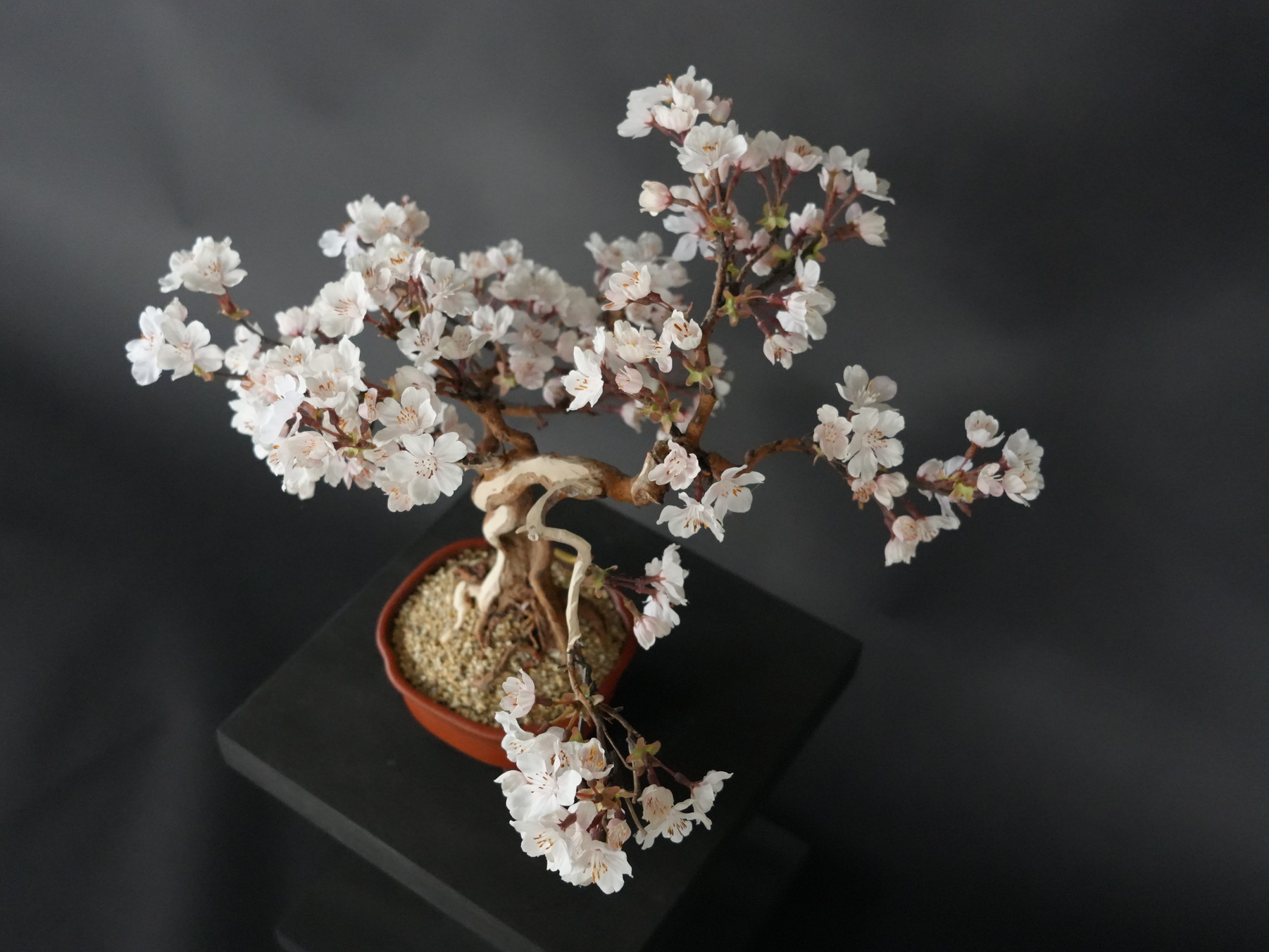 長年生きてきた、さらに盆栽の特別な技術を施した、佇まいの素晴しい盆栽。そこには大変な時間と労力がかかっています。長年の盆栽眼で価値のあるものを厳選した枯れ盆栽。さつきの枯れた盆栽にアーテイフィシャルの桜の花をつけ、見事な美しい姿に設え直しました。藤田独自のシャリ技術を施した逸品です。鉢中は砂で固めていますのでこぼれや虫の心配は有りません。「再生」や「再定義」をテーマに藤田が独自に開発したドライ盆栽®。今、世界中で大変な人気になっています。特別な贈り物やインテリア、オブジェにお勧めします。